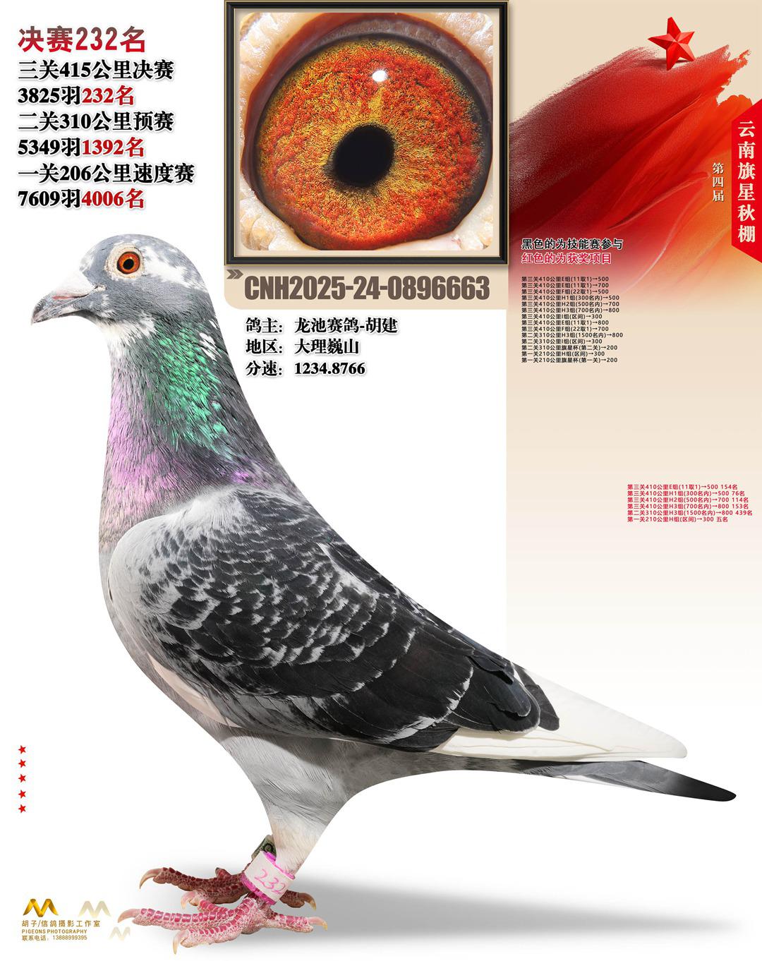 云南大理旗星赛鸽中心2025决赛232名龙池赛鸽-胡建24-0896663大理巍山获奖鸽展示!