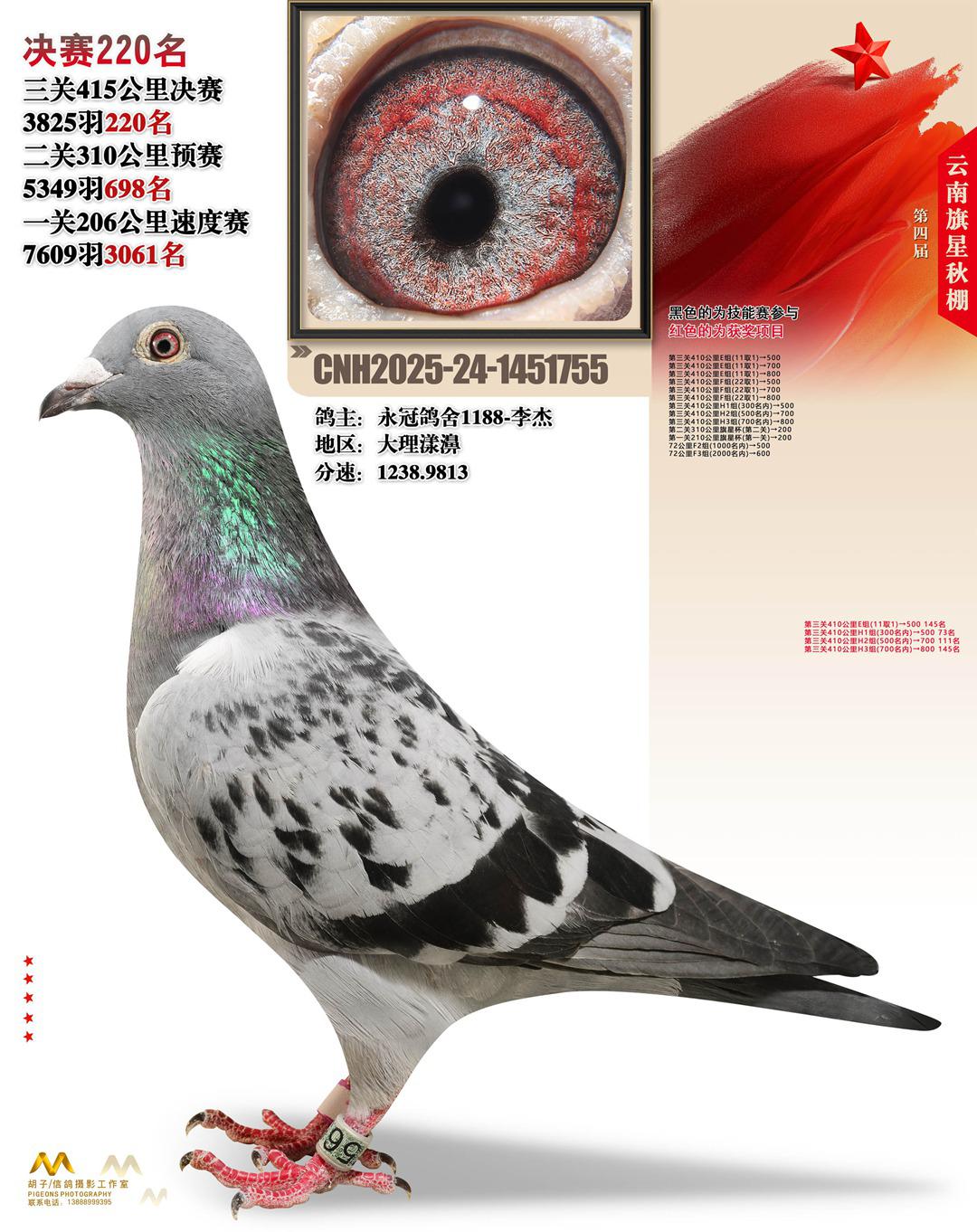 云南大理旗星赛鸽中心2025决赛220名永冠鸽舍1188-李杰24-1451755大理漾濞获奖鸽展示!