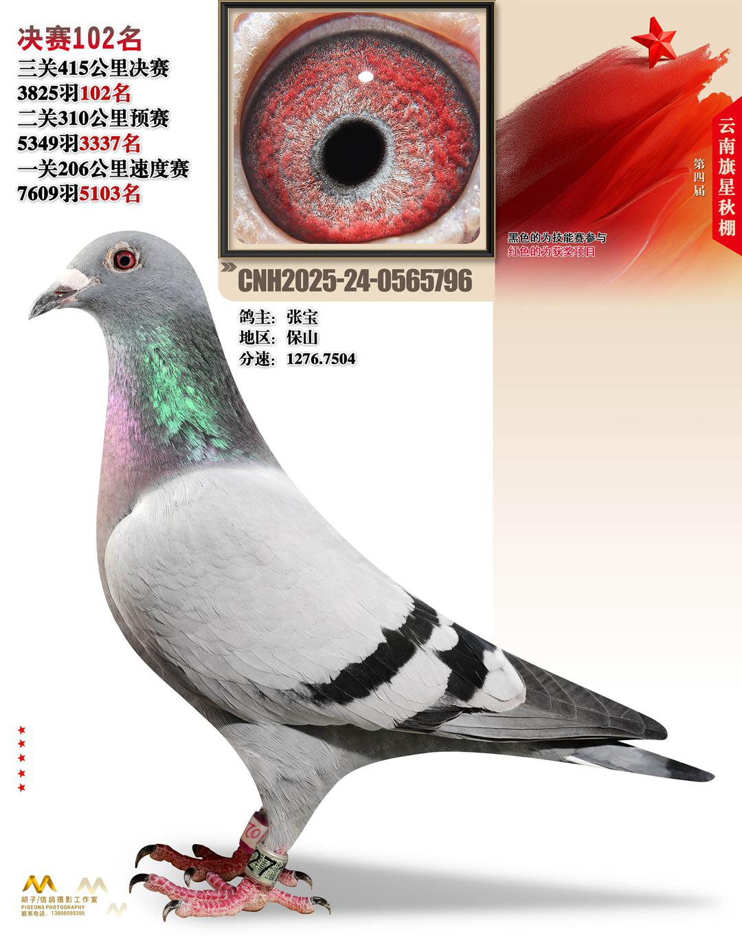 云南大理旗星赛鸽中心2025决赛102名张宝24-0565796保山获奖鸽展示!