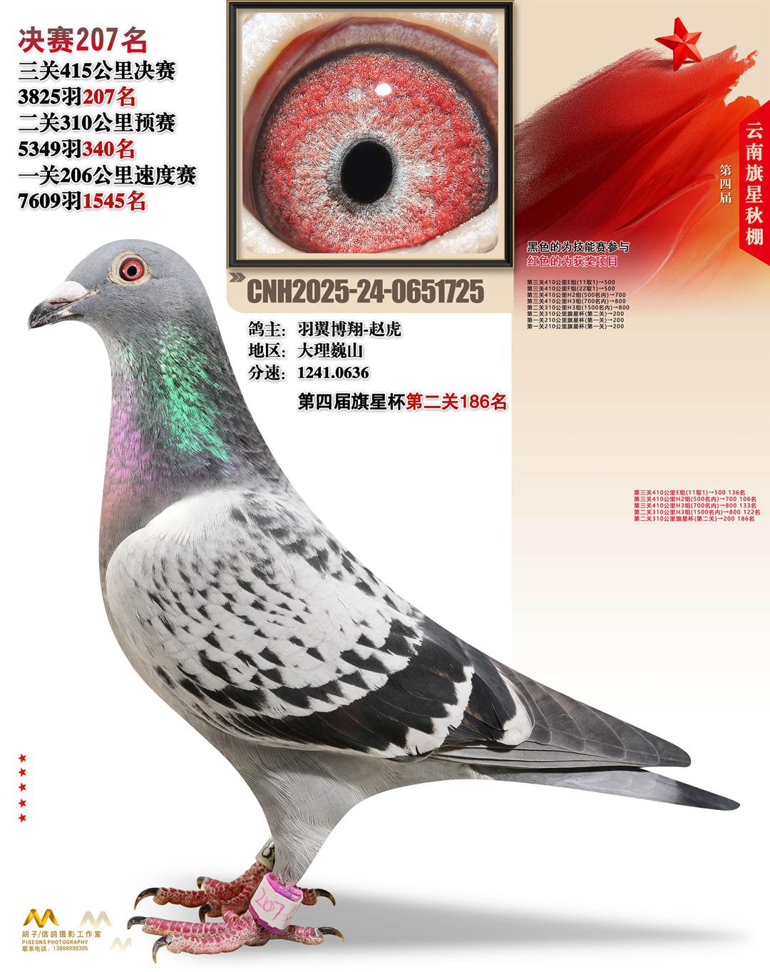 云南大理旗星赛鸽中心2025决赛207名羽翼博翔-赵虎24-0651725大理巍山获奖鸽展示!