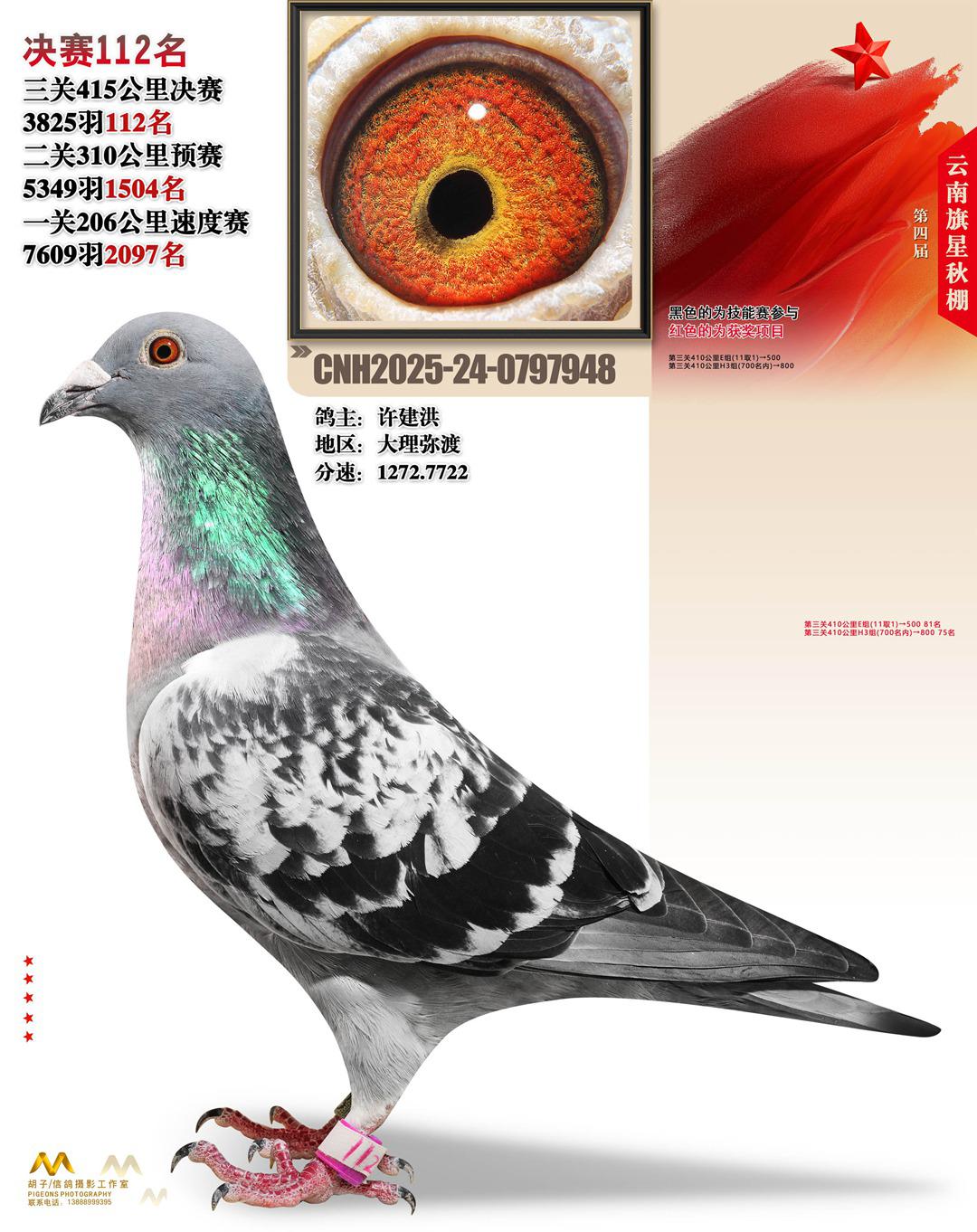 云南大理旗星赛鸽中心2025决赛112名许建洪24-0797948大理弥渡获奖鸽展示!
