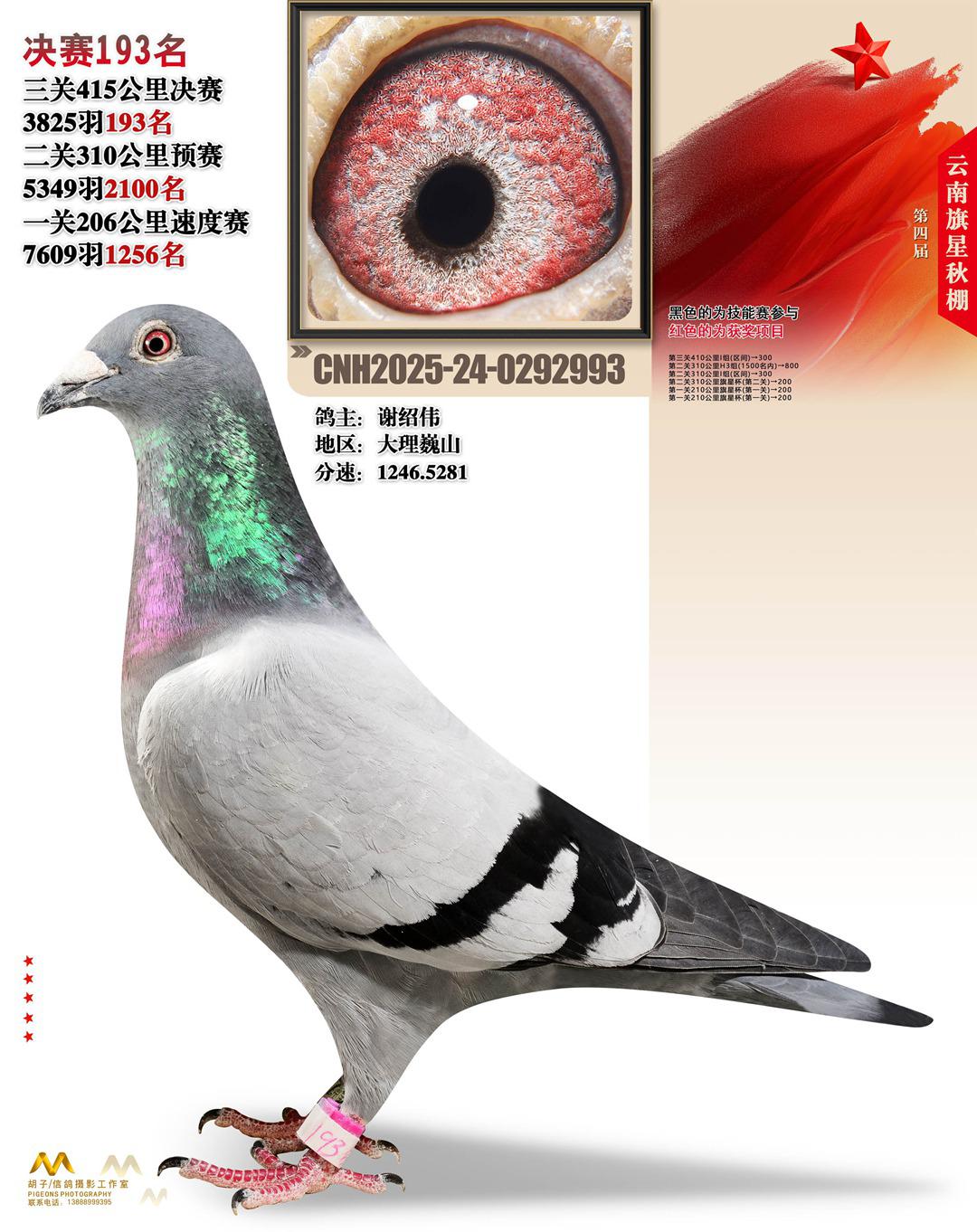 云南大理旗星赛鸽中心2025决赛193名谢绍伟24-0292993大理巍山获奖鸽展示!