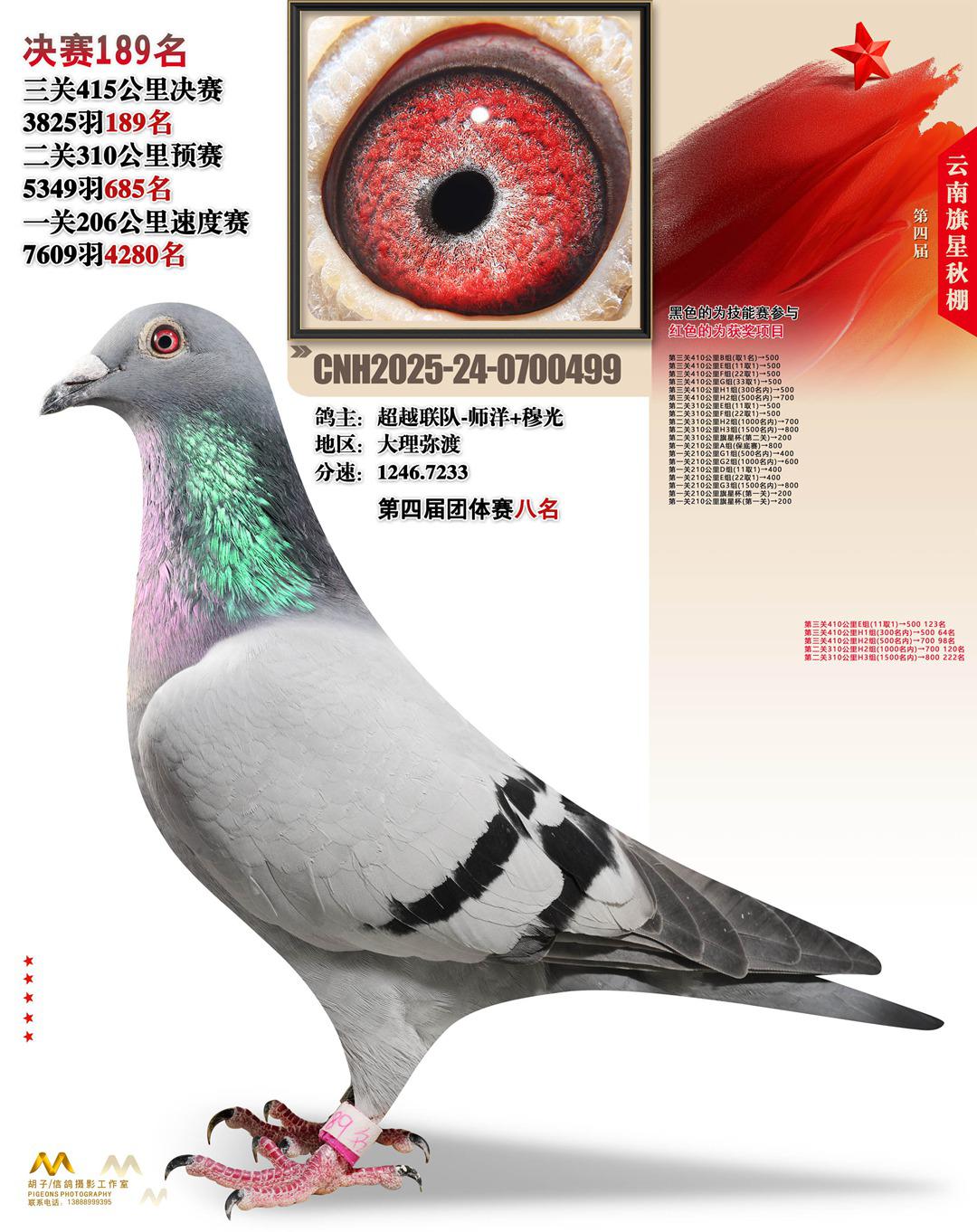 云南大理旗星赛鸽中心2025决赛189名超越联队-师洋+穆光24-0700499大理弥渡获奖鸽展示!