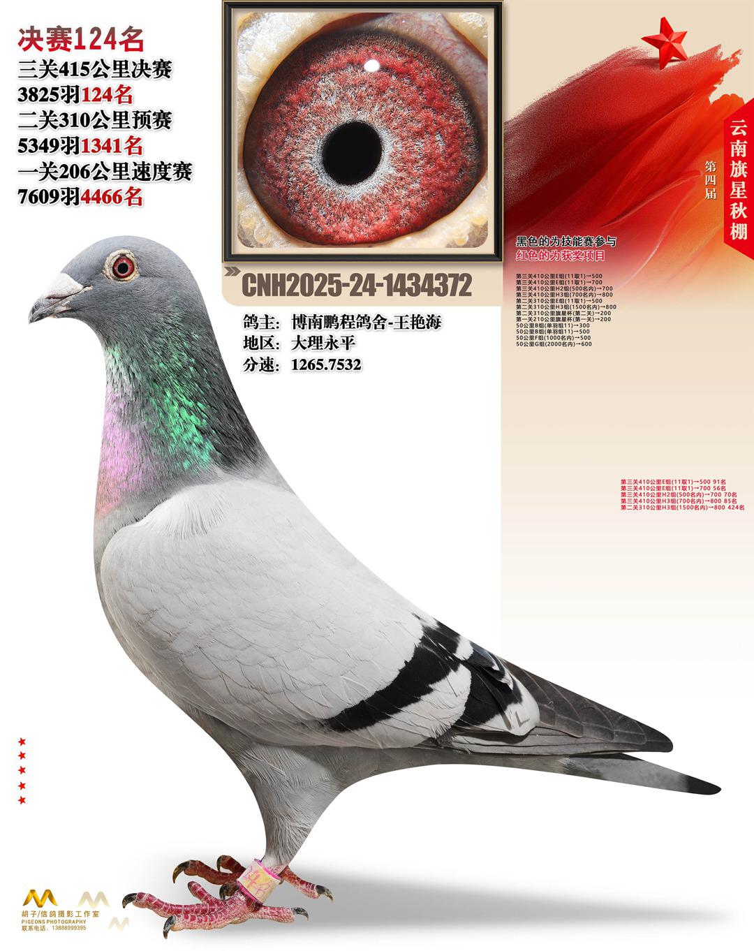 云南大理旗星赛鸽中心2025决赛124名博南鹏程鸽舍-王艳海24-1434372大理永平获奖鸽展示!