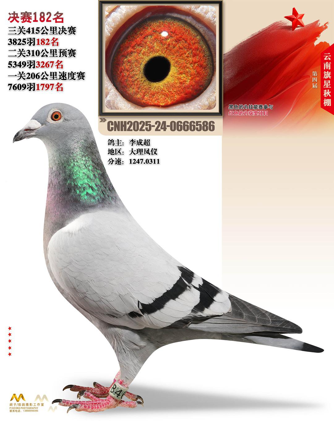 云南大理旗星赛鸽中心2025决赛182名李成超24-0666586大理凤仪获奖鸽展示!