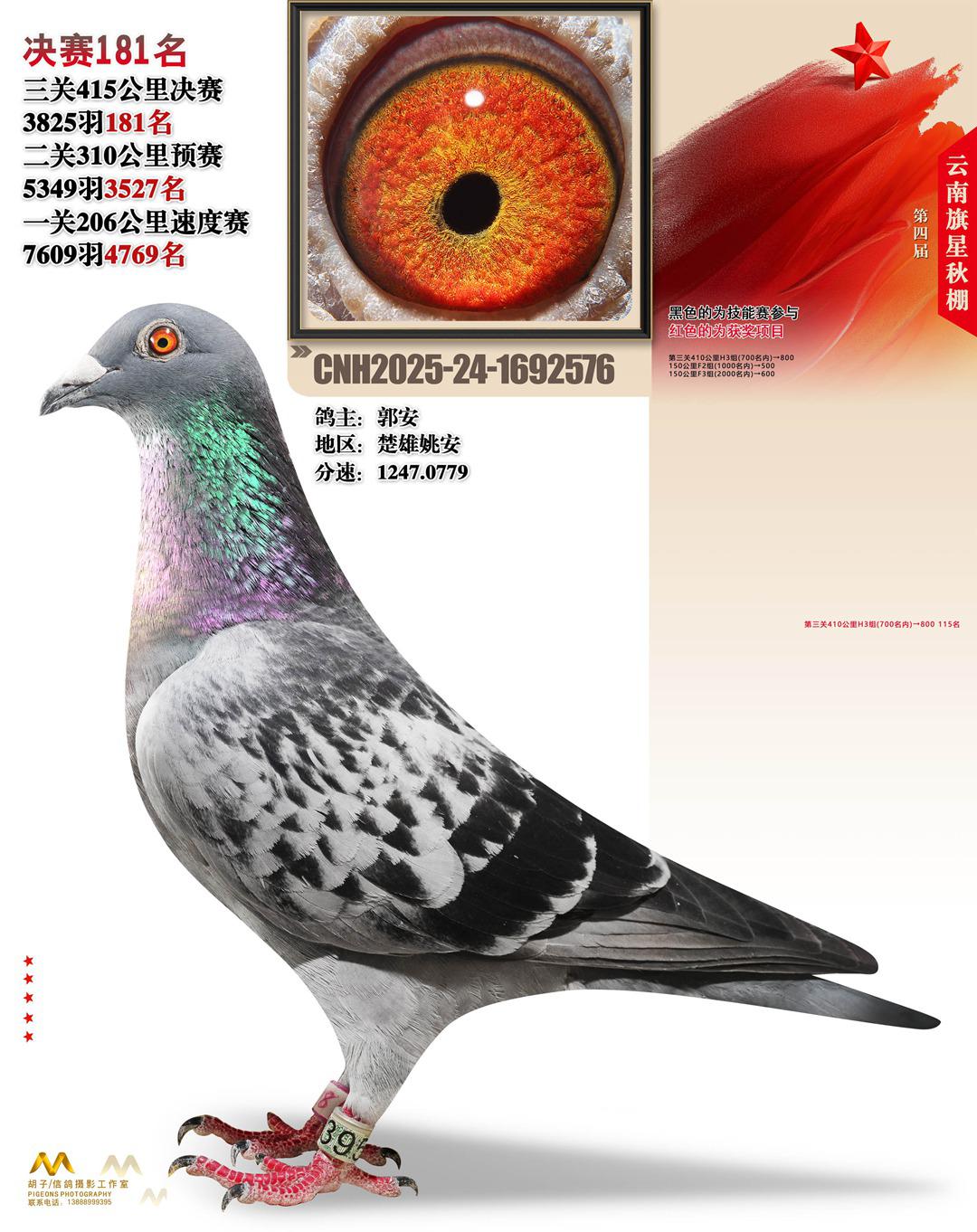 云南大理旗星赛鸽中心2025决赛181名郭安24-1692576楚雄姚安获奖鸽展示!