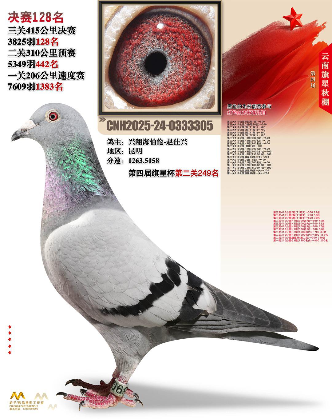 云南大理旗星赛鸽中心2025决赛128名兴翔海伯伦-赵佳兴24-0333305昆明获奖鸽展示!