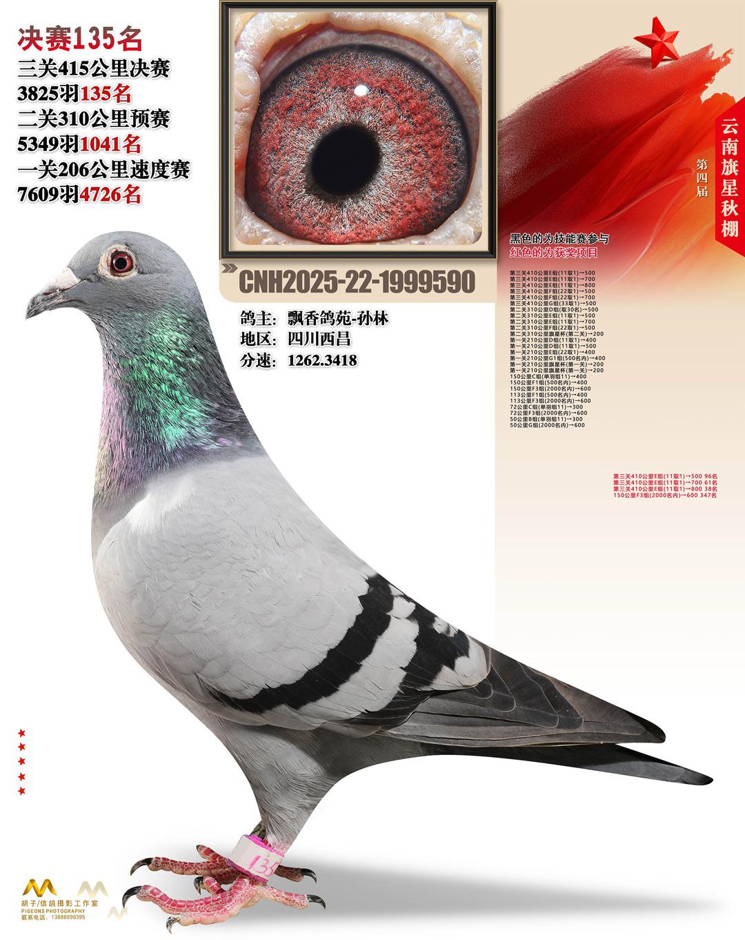云南大理旗星赛鸽中心2025决赛135名飘香鸽苑-孙林22-1999590四川西昌获奖鸽展示!