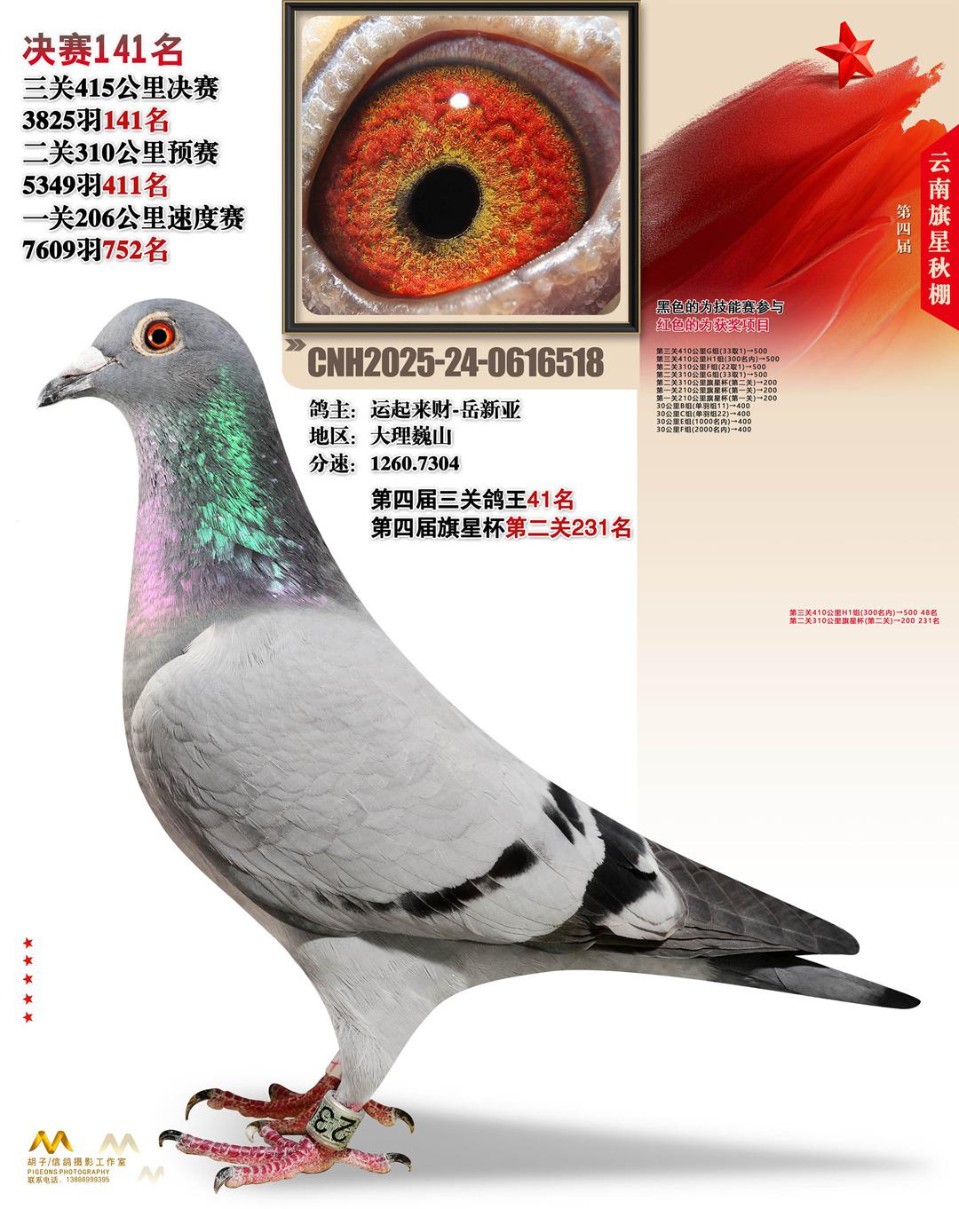 云南大理旗星赛鸽中心2025决赛141名运起来财-岳新亚24-0616518大理巍山获奖鸽展示!