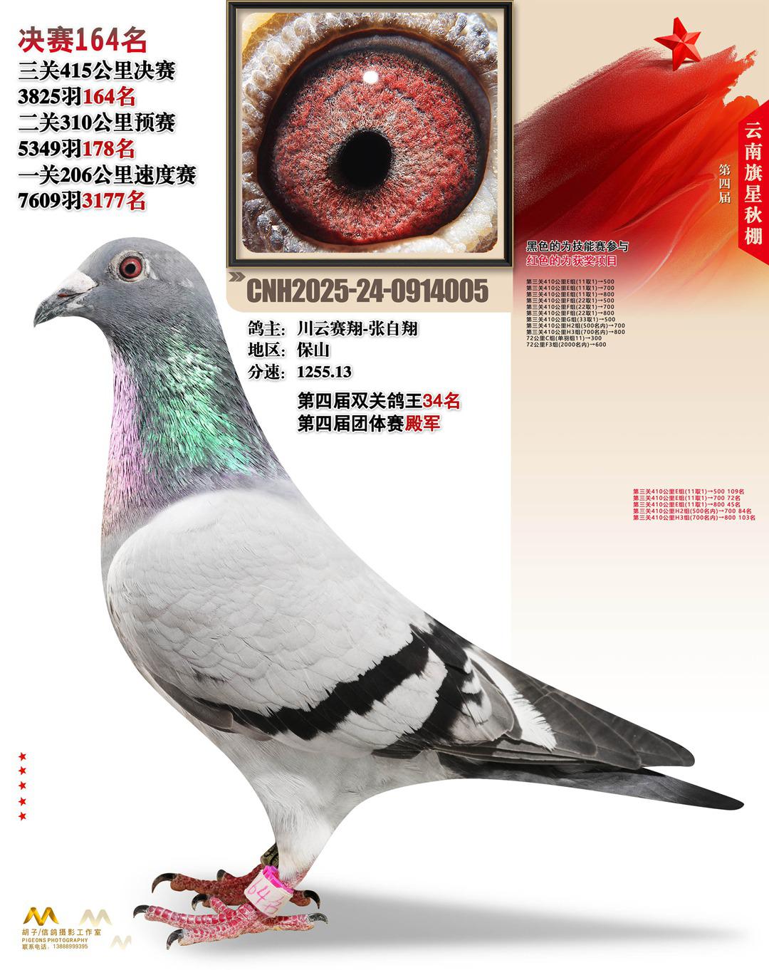 云南大理旗星赛鸽中心2025决赛164名川云赛翔-张自翔24-0914005保山获奖鸽展示!