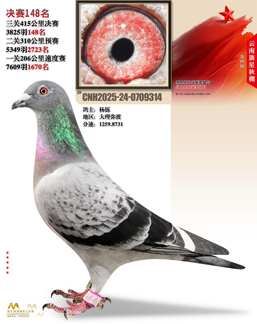 云南大理旗星赛鸽中心2025决赛148名杨铄24-0709314大理弥渡获奖鸽展示!