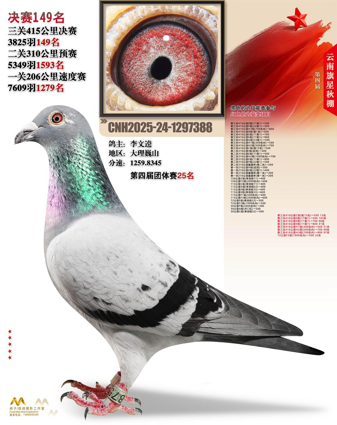 云南大理旗星赛鸽中心2025决赛149名李文逵24-1297388大理巍山获奖鸽展示!