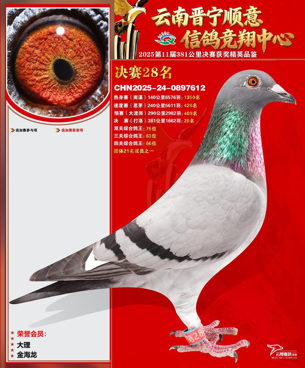 云南晋宁顺意信鸽竞翔中心2025决赛28名金海龙2025-24-0897612大理获奖鸽展示!