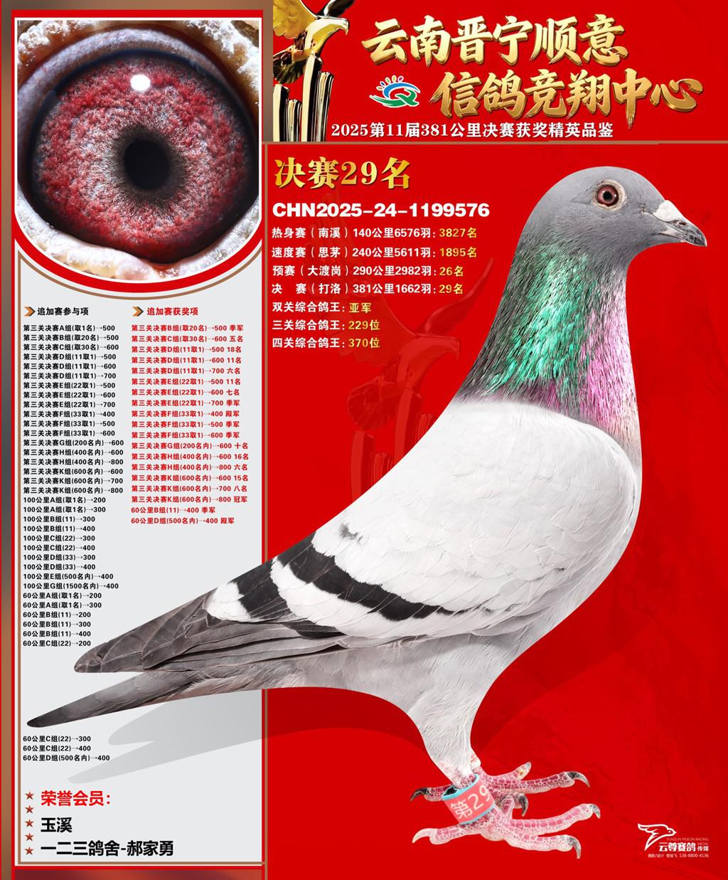 云南晋宁顺意信鸽竞翔中心2025决赛29名一二三鸽舍-郝家勇2025-24-1199576玉溪获奖鸽展示!