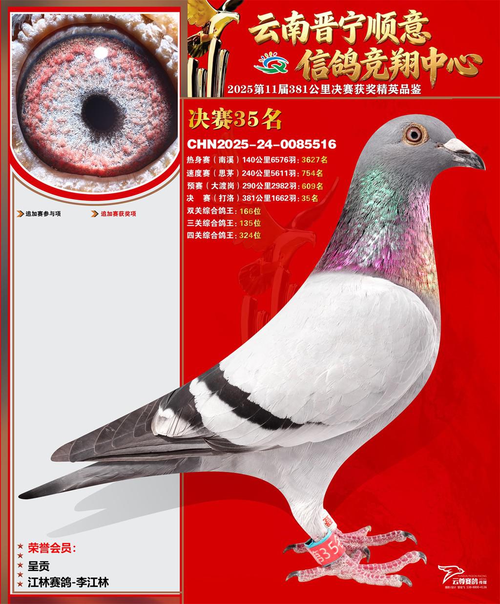 云南晋宁顺意信鸽竞翔中心2025决赛35名江林赛鸽-李江林2025-24-0085516呈贡获奖鸽展示!