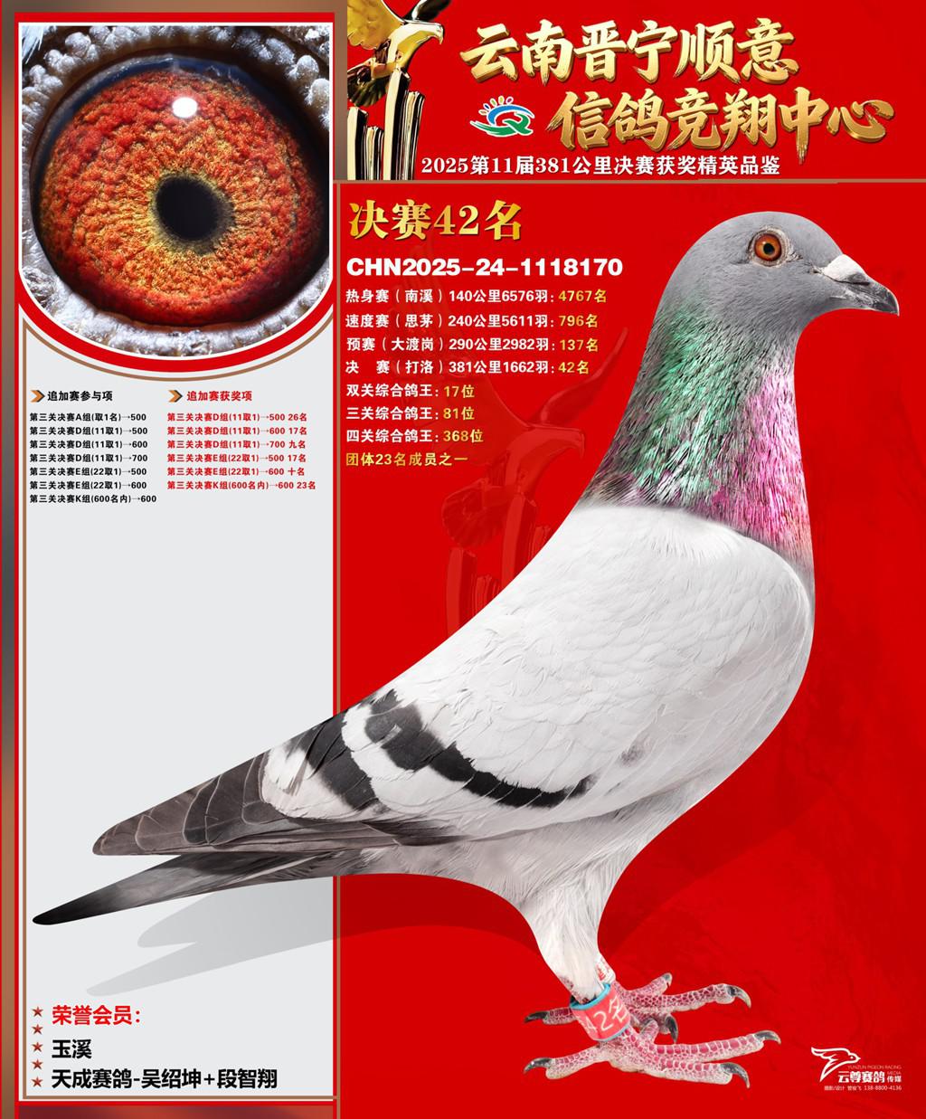 云南晋宁顺意信鸽竞翔中心2025决赛42名天成赛鸽-吴绍坤+段智翔2025-24-1118170玉溪获奖鸽展示!