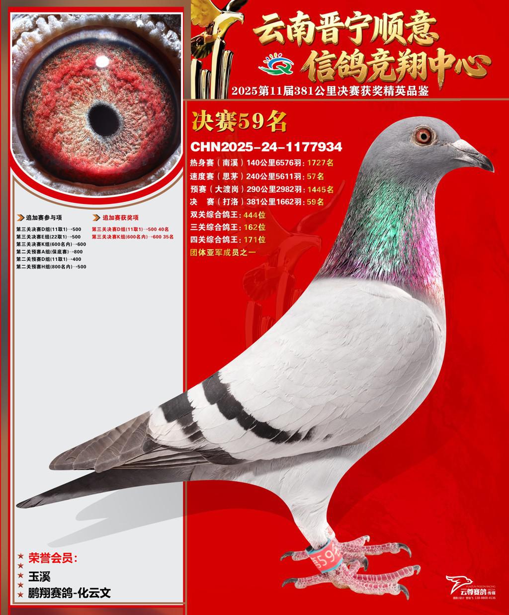 云南晋宁顺意信鸽竞翔中心2025决赛59名鹏翔赛鸽-化云文2025-24-1177934玉溪获奖鸽展示!