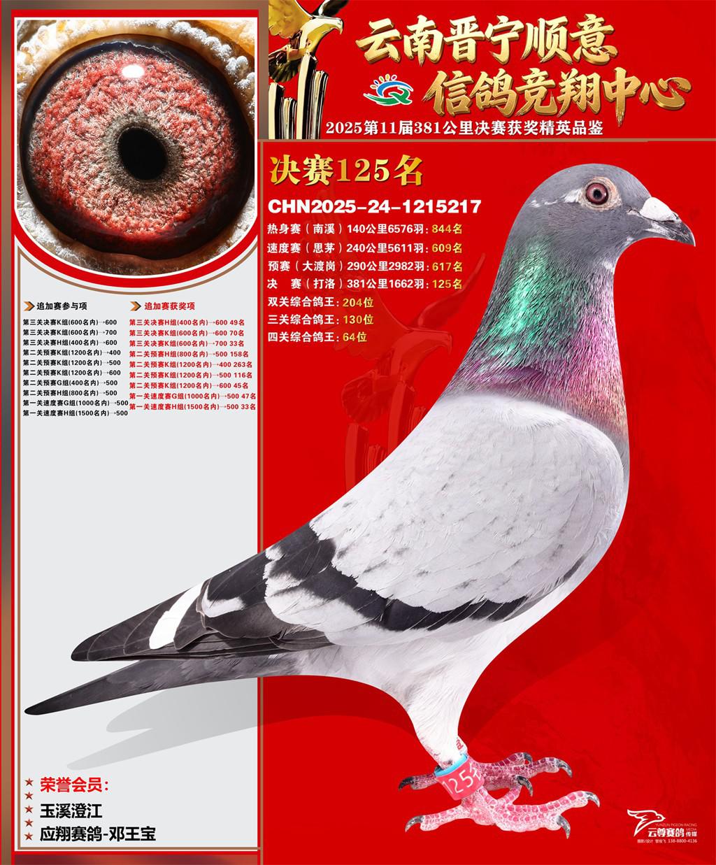 云南晋宁顺意信鸽竞翔中心2025决赛125名应翔赛鸽-邓王宝2025-24-1215217玉溪澄江获奖鸽展示!
