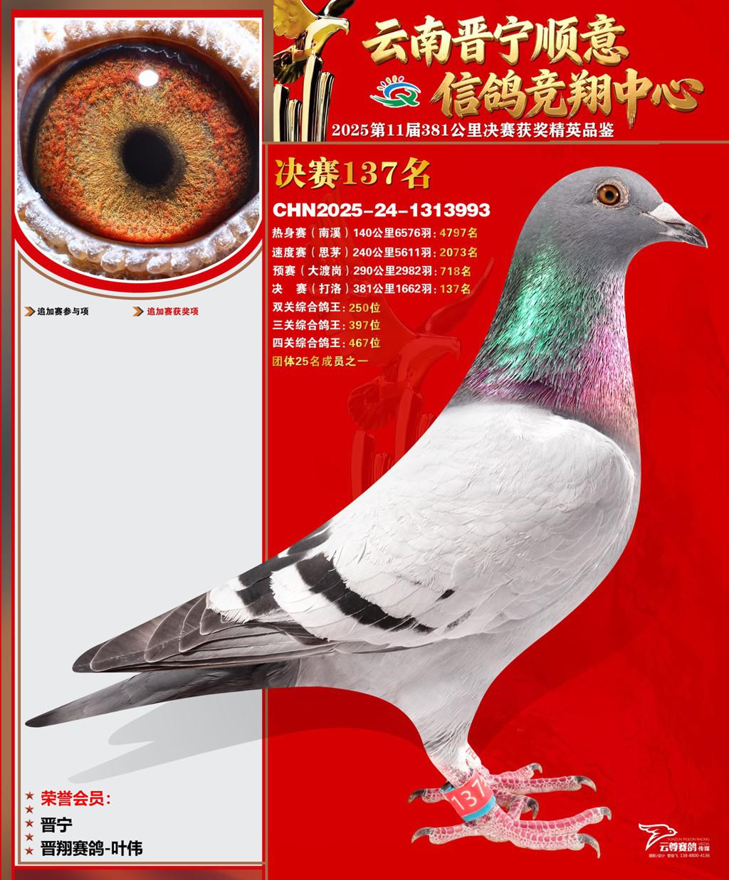 云南晋宁顺意信鸽竞翔中心2025决赛137名晋翔赛鸽-叶伟2025-24-1313993晋宁获奖鸽展示!