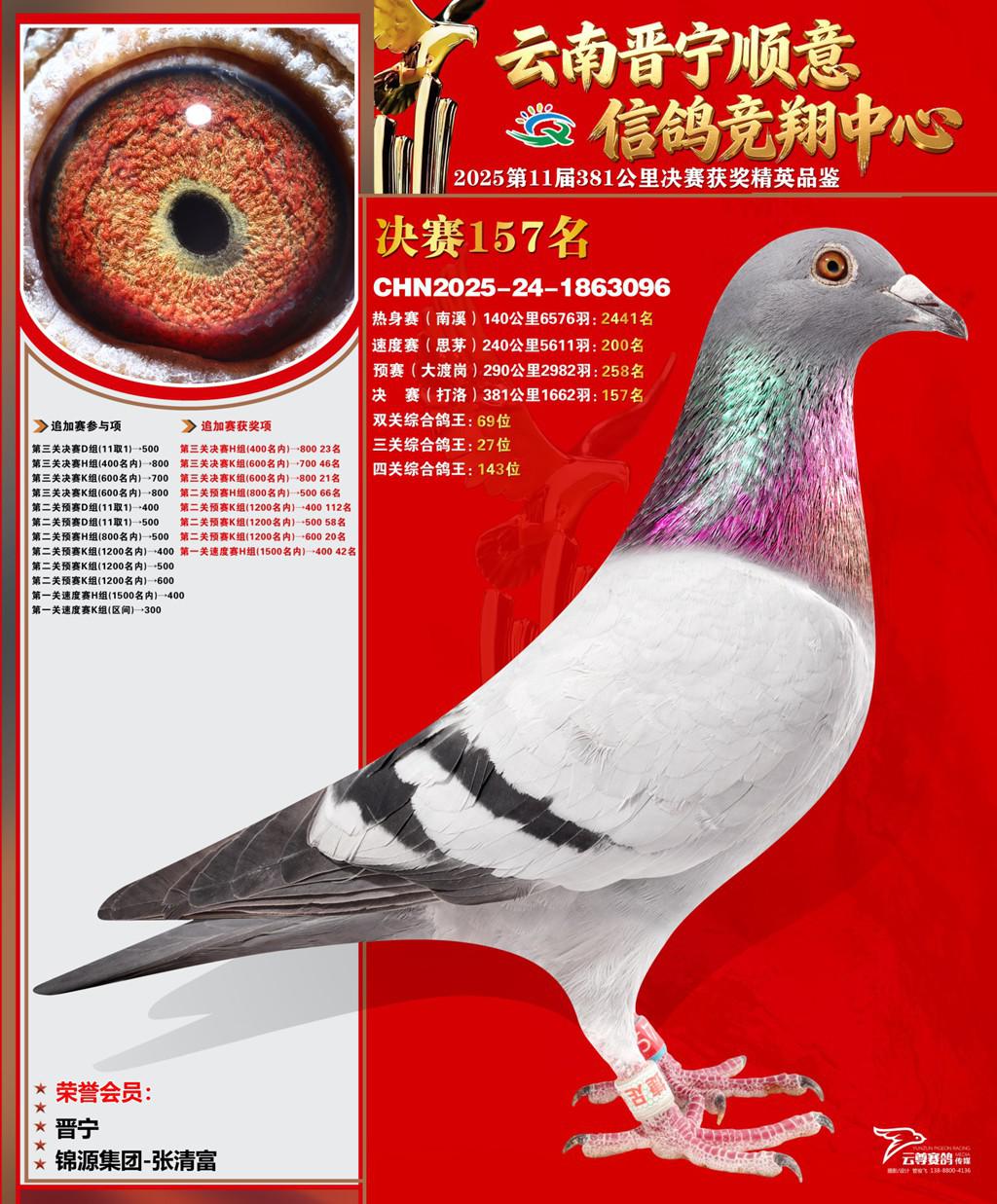 云南晋宁顺意信鸽竞翔中心2025决赛157名锦源集团-张清富2025-24-1863096晋宁获奖鸽展示!
