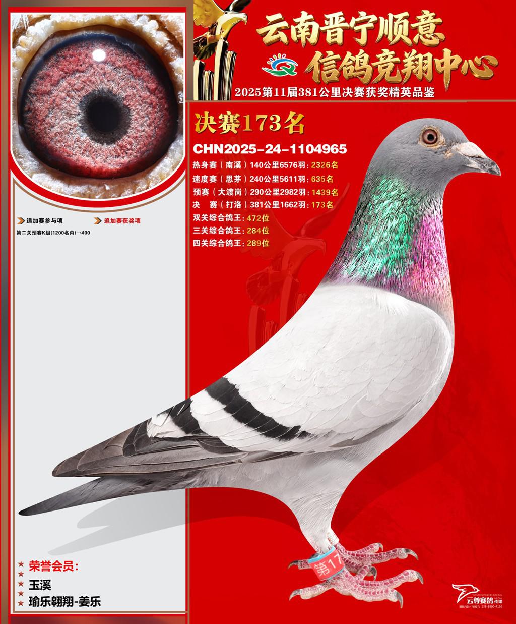 云南晋宁顺意信鸽竞翔中心2025决赛173名瑜乐翱翔-姜乐2025-24-1104965玉溪获奖鸽展示!