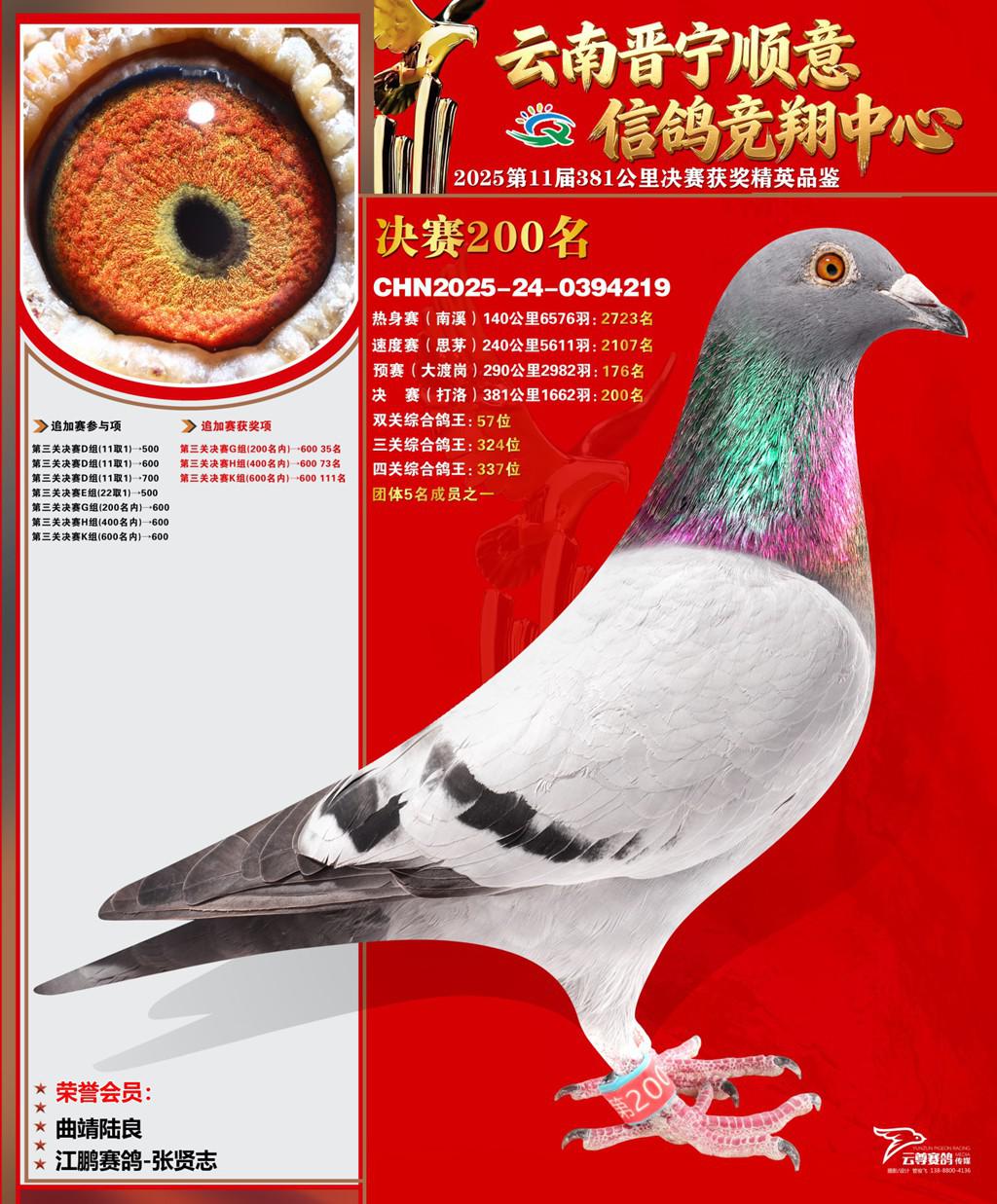 云南晋宁顺意信鸽竞翔中心2025决赛200名江鹏赛鸽-张贤志2025-24-0394219曲靖陆良获奖鸽展示!
