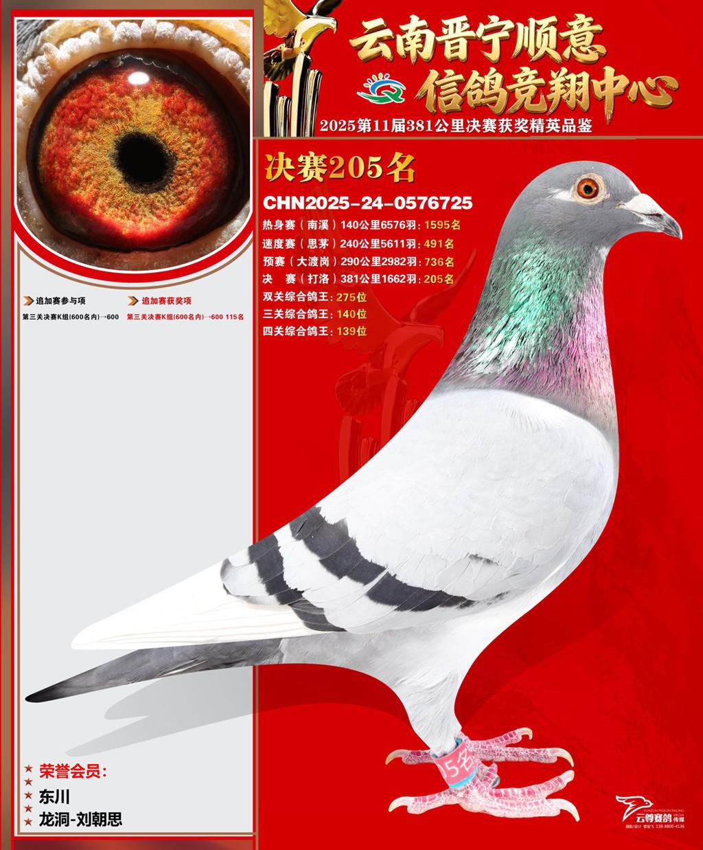 云南晋宁顺意信鸽竞翔中心2025决赛205名龙洞-刘朝思2025-24-0576725东川获奖鸽展示!