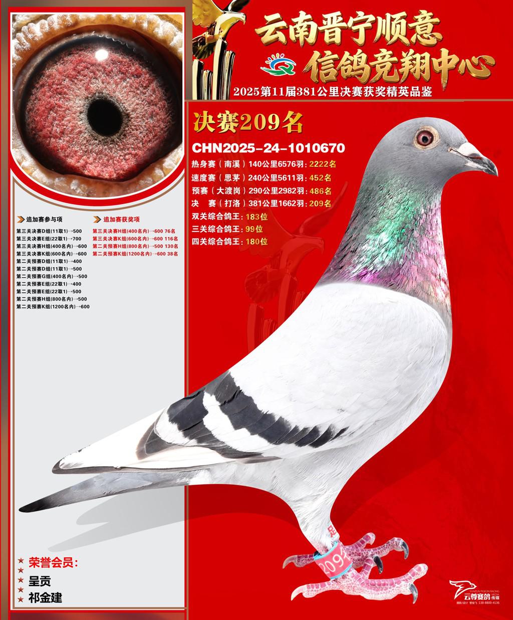 云南晋宁顺意信鸽竞翔中心2025决赛209名祁金建2025-24-1010670呈贡获奖鸽展示!