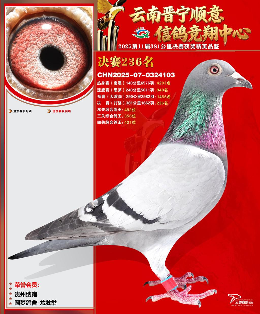云南晋宁顺意信鸽竞翔中心2025决赛236名圆梦鸽舍-尤发举2025-07-0324103贵州纳雍获奖鸽展示!