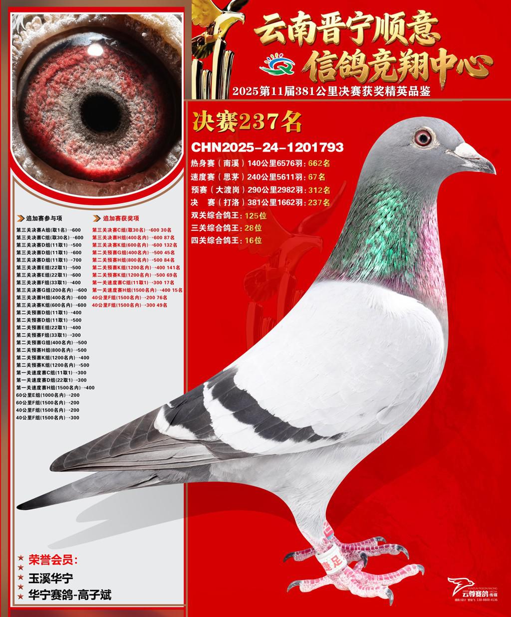 云南晋宁顺意信鸽竞翔中心2025决赛237名华宁赛鸽-高子斌2025-24-1201793玉溪华宁获奖鸽展示!