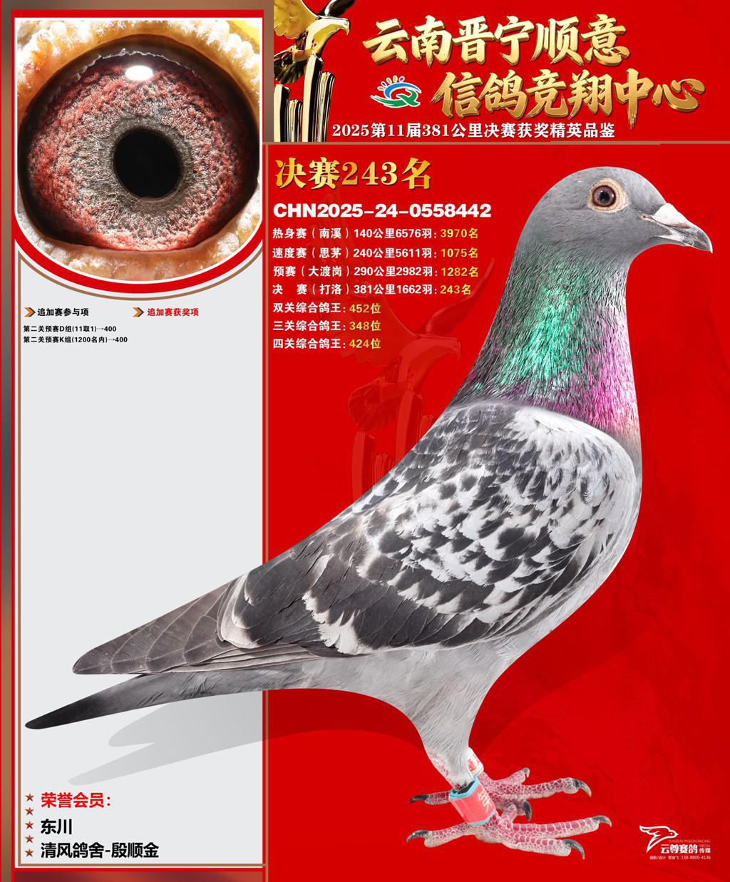 云南晋宁顺意信鸽竞翔中心2025决赛243名清风鸽舍-殷顺金2025-24-0558442东川获奖鸽展示!