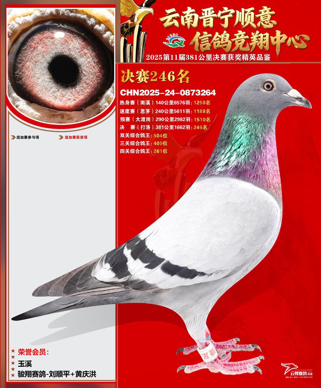 云南晋宁顺意信鸽竞翔中心2025决赛246名骏翔赛鸽-刘顺平+黄庆洪2025-24-0873264玉溪获奖鸽展示!