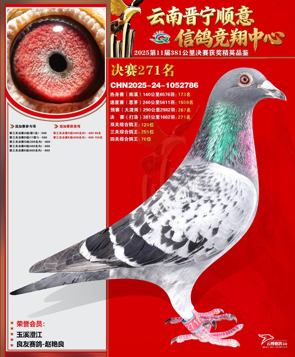 云南晋宁顺意信鸽竞翔中心2025决赛271名良友赛鸽-赵艳良2025-24-1052786玉溪澄江获奖鸽展示!