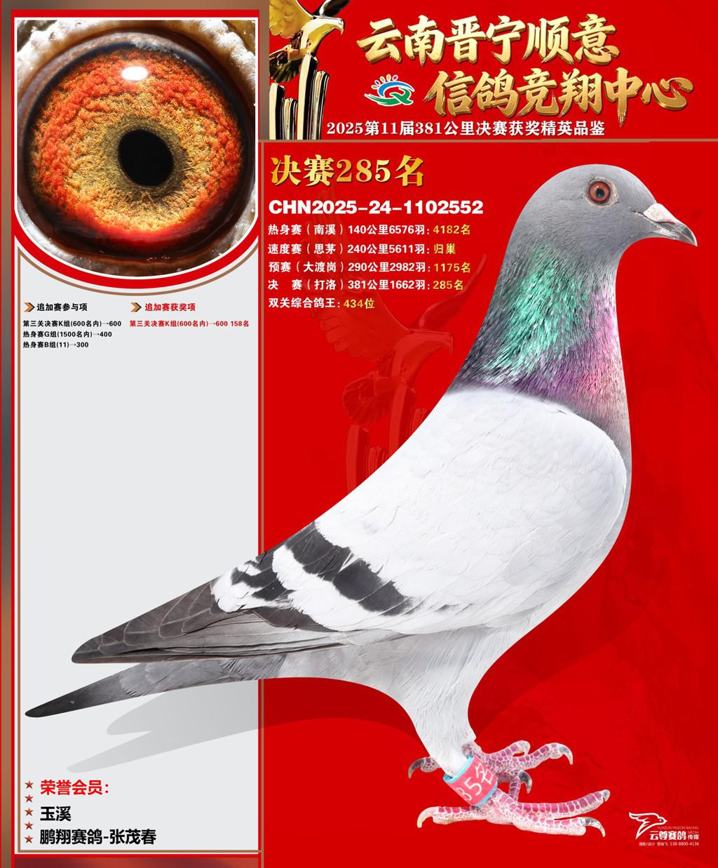 云南晋宁顺意信鸽竞翔中心2025决赛285名鹏翔赛鸽-张茂春2025-24-1102552玉溪获奖鸽展示!
