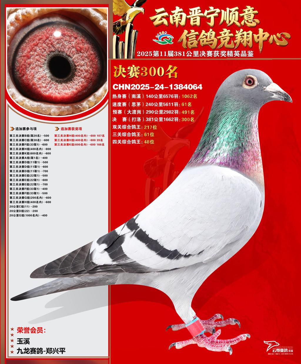 云南晋宁顺意信鸽竞翔中心2025决赛300名九龙赛鸽-郑兴平2025-24-1384064玉溪获奖鸽展示!