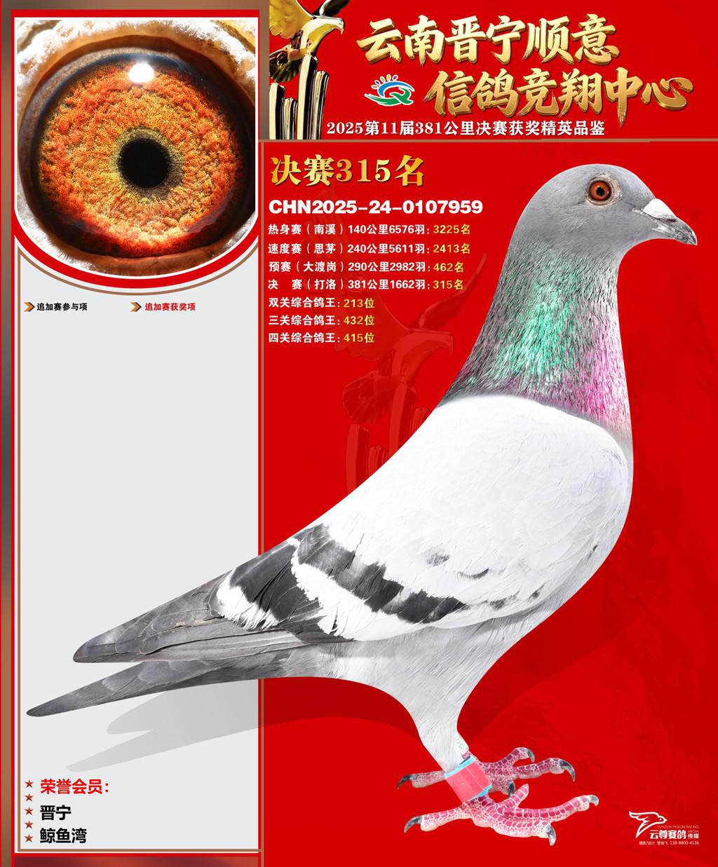 云南晋宁顺意信鸽竞翔中心2025决赛315名鲸鱼湾2025-24-0107959晋宁获奖鸽展示!