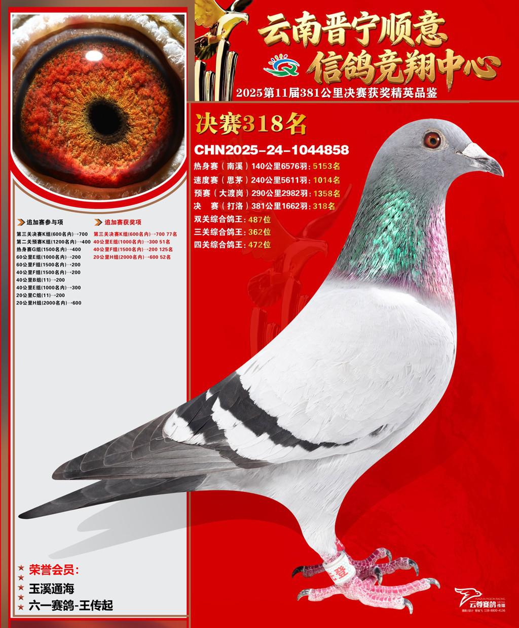 云南晋宁顺意信鸽竞翔中心2025决赛318名六一赛鸽-王传起2025-24-1044858玉溪通海获奖鸽展示!