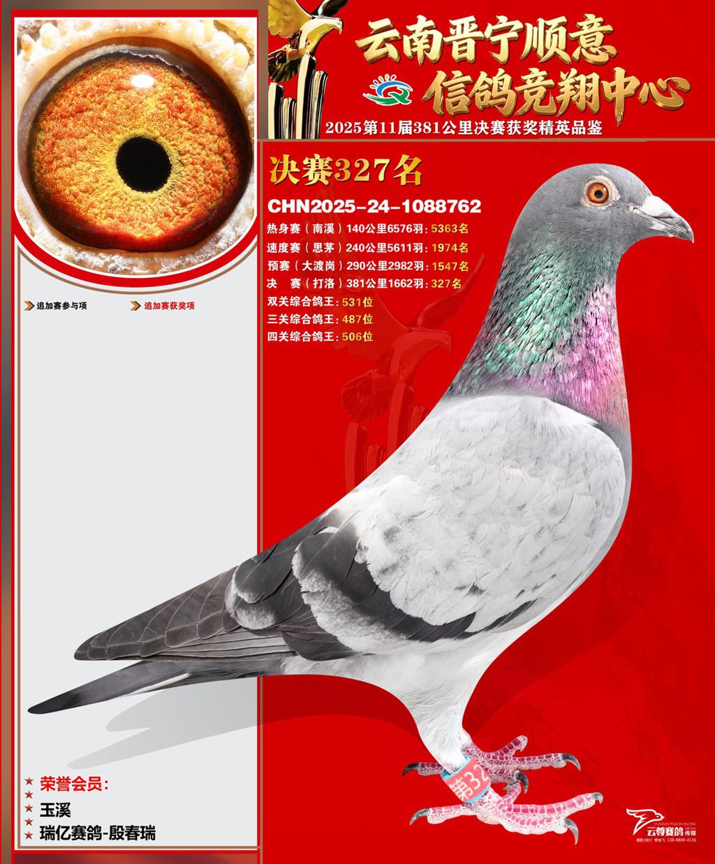 云南晋宁顺意信鸽竞翔中心2025决赛327名瑞亿赛鸽-殷春瑞2025-24-1088762玉溪获奖鸽展示!