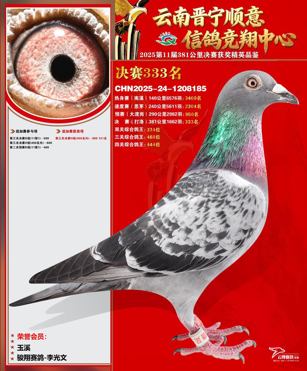 云南晋宁顺意信鸽竞翔中心2025决赛333名骏翔赛鸽-李光文2025-24-1208185玉溪获奖鸽展示!
