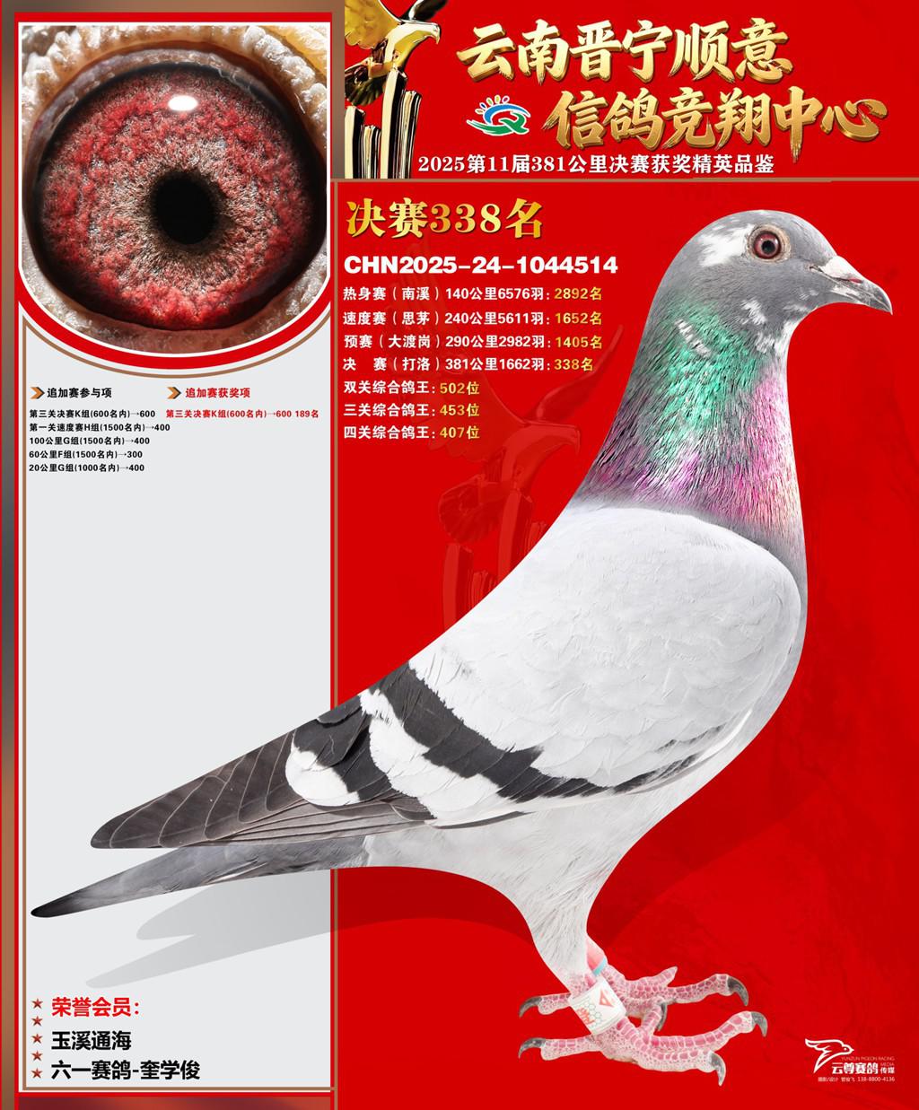 云南晋宁顺意信鸽竞翔中心2025决赛338名六一赛鸽-奎学俊2025-24-1044514玉溪通海获奖鸽展示!