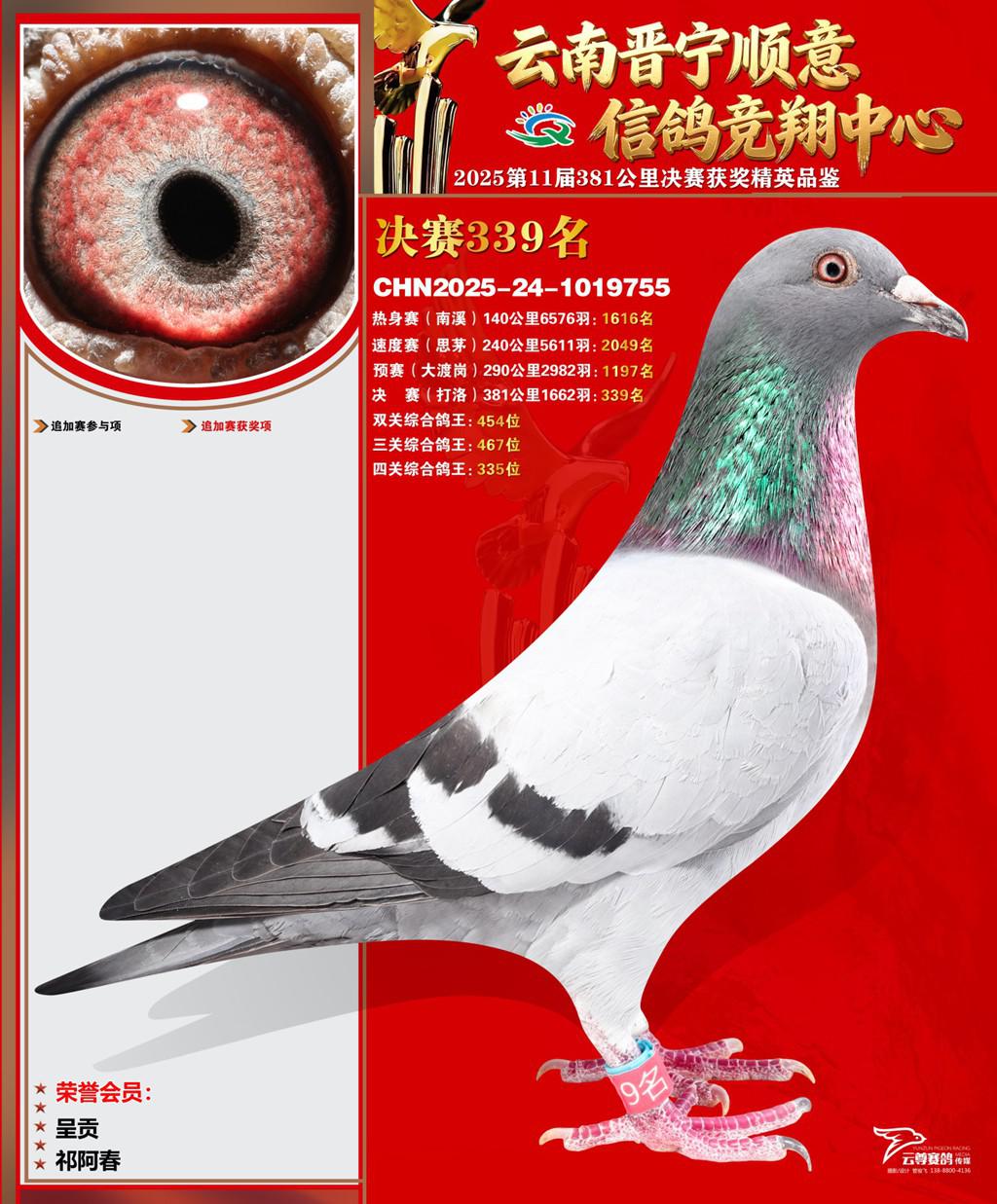 云南晋宁顺意信鸽竞翔中心2025决赛339名祁阿春2025-24-1019755呈贡获奖鸽展示!