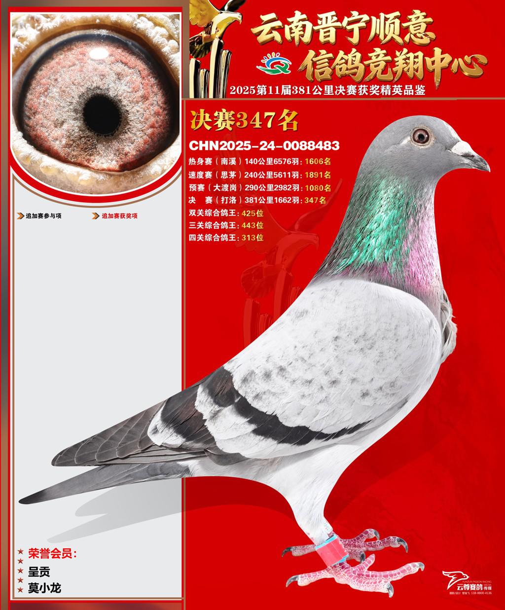 云南晋宁顺意信鸽竞翔中心2025决赛347名莫小龙2025-24-0088483呈贡获奖鸽展示!