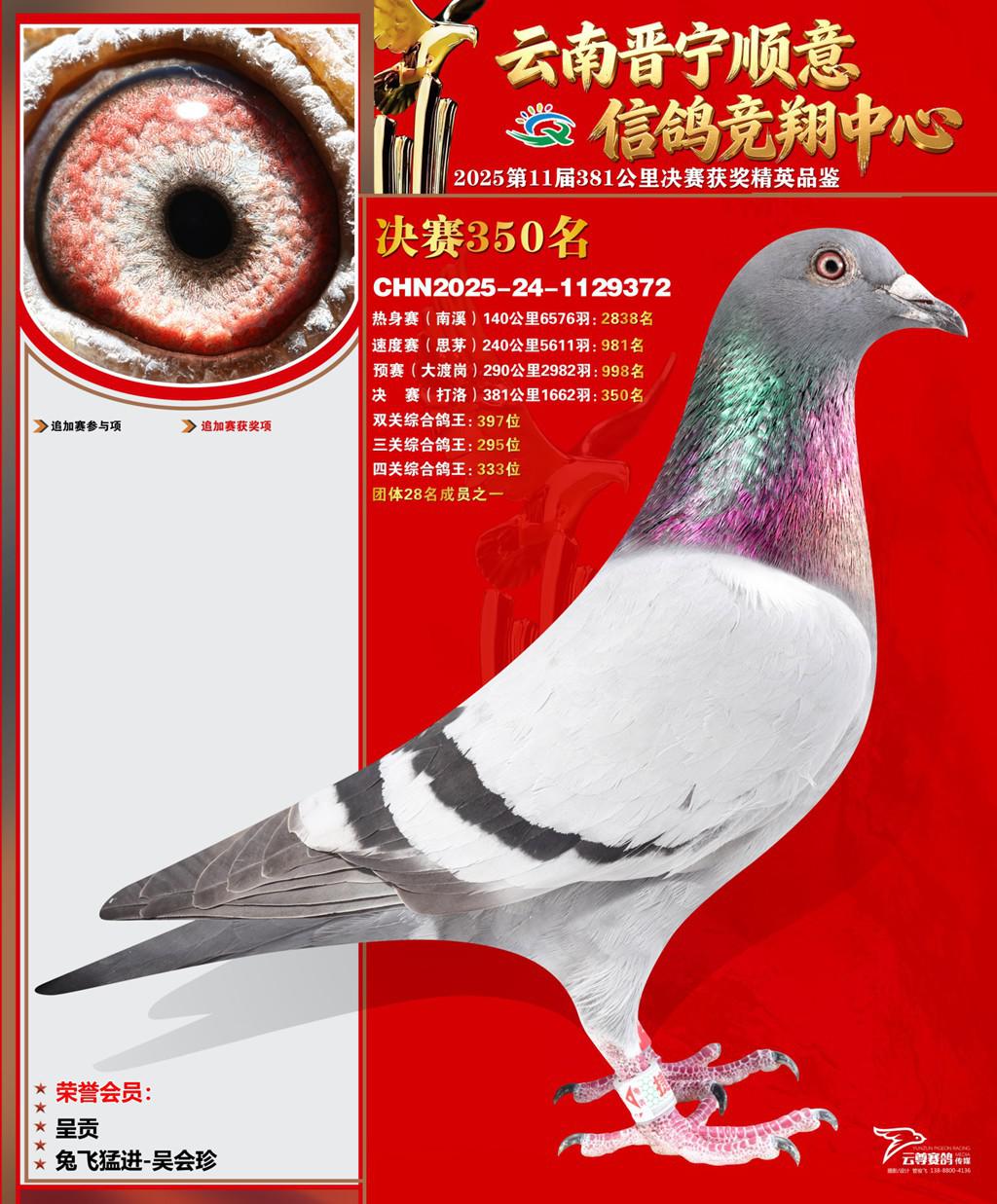 云南晋宁顺意信鸽竞翔中心2025决赛350名兔飞猛进-吴会珍2025-24-1129372呈贡获奖鸽展示!