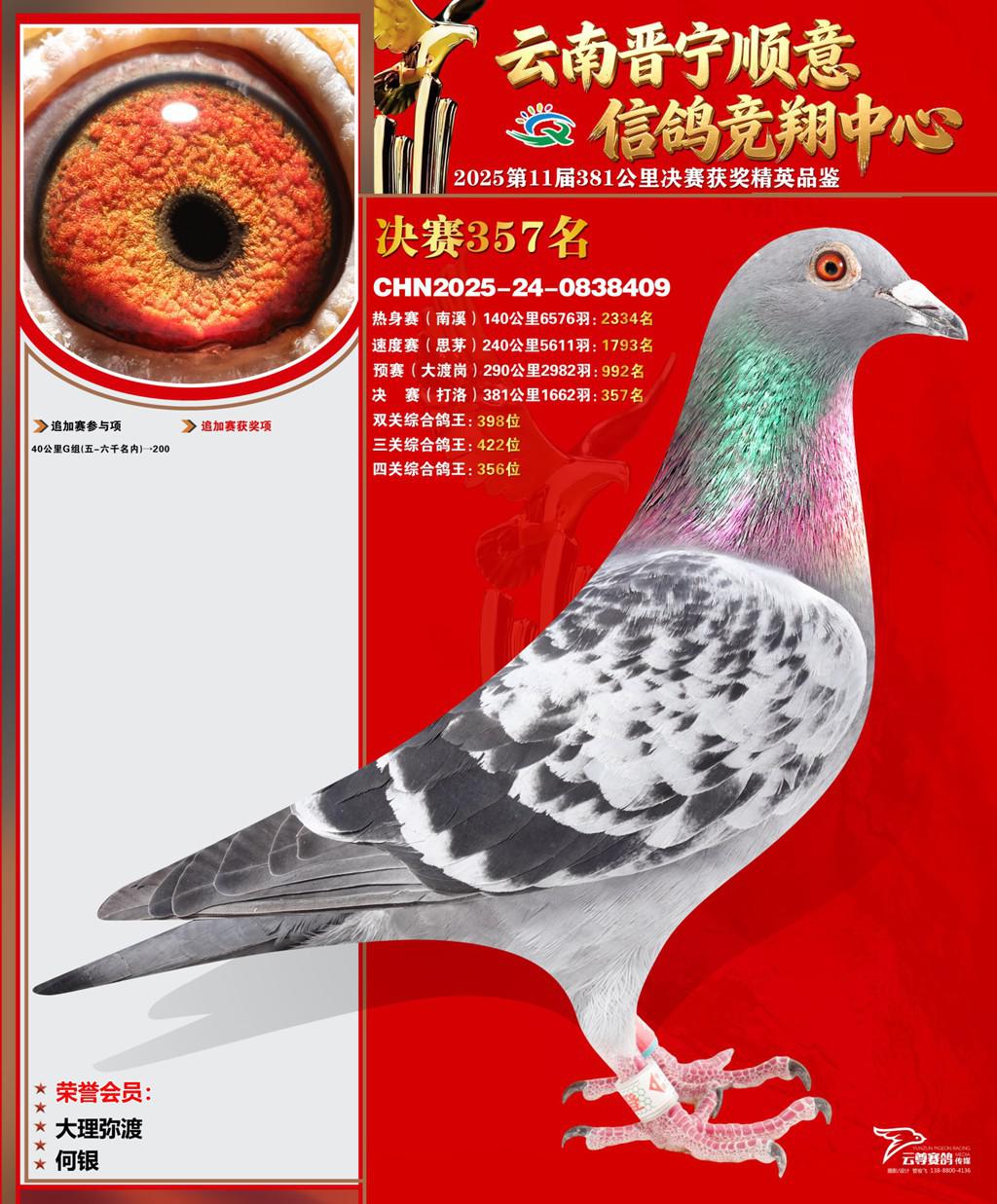 云南晋宁顺意信鸽竞翔中心2025决赛357名何银2025-24-0838409大理弥渡获奖鸽展示!