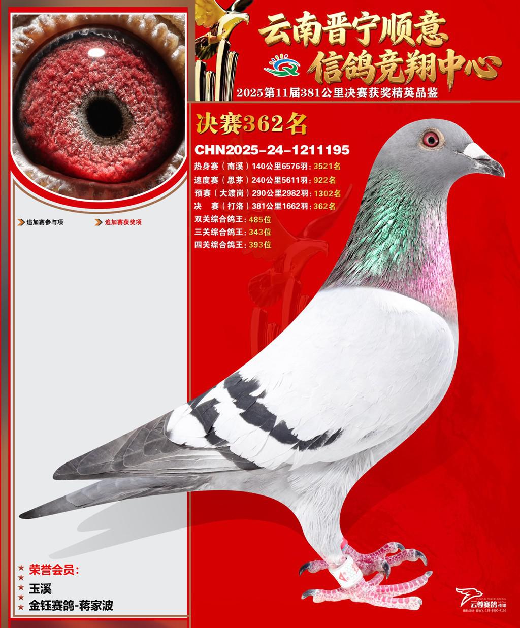 云南晋宁顺意信鸽竞翔中心2025决赛362名金钰赛鸽-蒋家波2025-24-1211195玉溪获奖鸽展示!