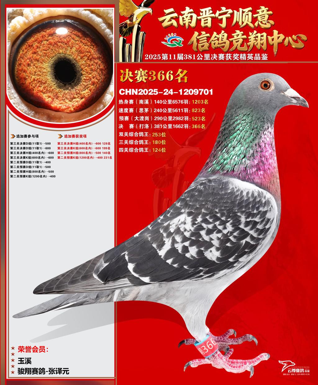 云南晋宁顺意信鸽竞翔中心2025决赛366名骏翔赛鸽-张译元2025-24-1209701玉溪获奖鸽展示!