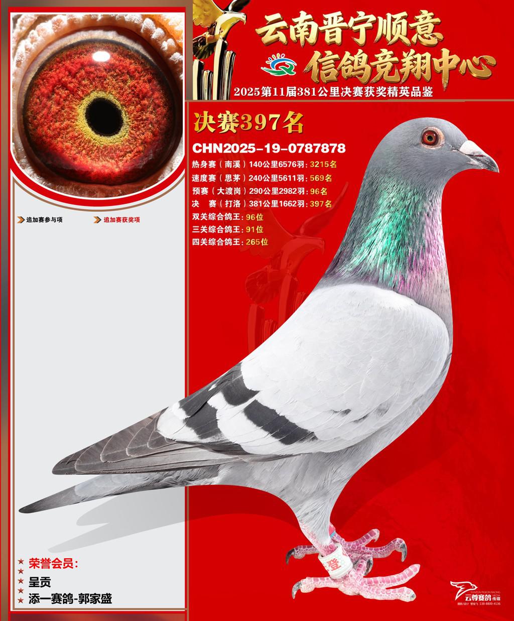 位置:云南晋宁顺意信鸽竞翔中心2025获奖鸽展示\决赛397名