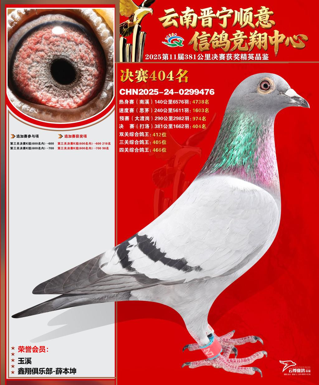 位置:云南晋宁顺意信鸽竞翔中心2025获奖鸽展示\决赛404名