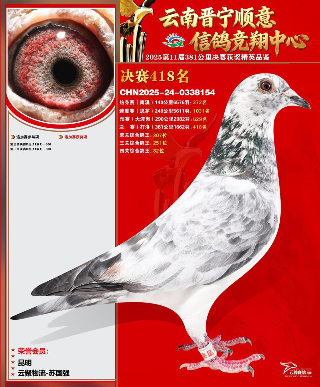 云南晋宁顺意信鸽竞翔中心2025决赛418名云聚物流-苏国强2025-24-0338154昆明获奖鸽展示!