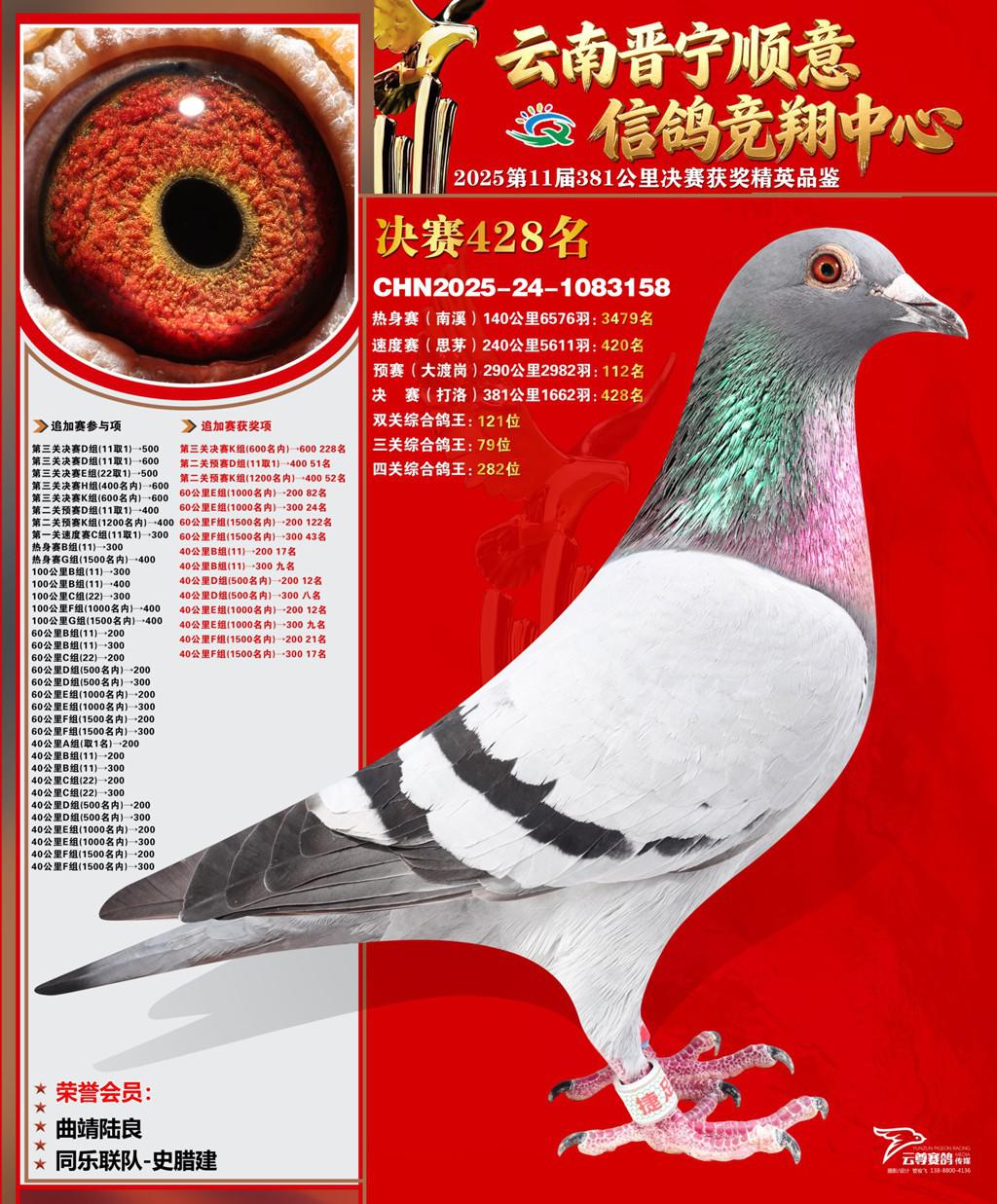 云南晋宁顺意信鸽竞翔中心2025决赛428名同乐联队-史腊建2025-24-1083158曲靖陆良获奖鸽展示!